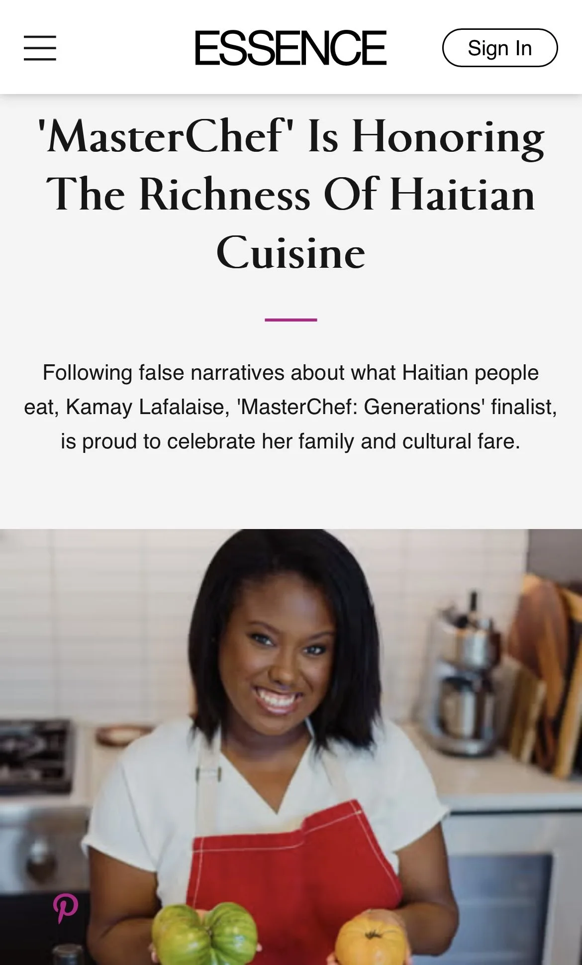 I sat down with Essence to talk about my background and MasterChef run. Read it here: https://www.essence.com/lifestyle/masterchef-kamay/.